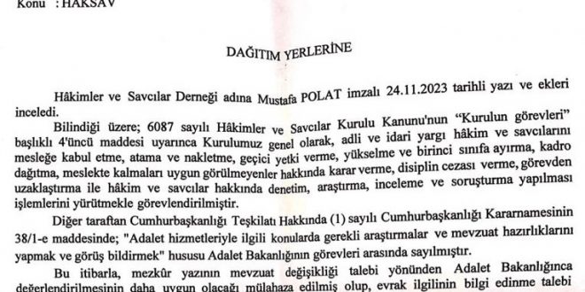 Derneğimizce başvuru dilekçesinde bu ayrımın kaldırılması yönünde de talepte bulunulduğundan ikinci dilekçede ise gerekli yasal düzenlemelerin yapılması için başvuru dilekçemizin Adalet Bakanlığı’na gönderildiği bilgisine yer verildi. Dolayısıyla derneğimiz yine bir ilke imza atarak bu konuda Adalet Bakanlığı’nı resmi olarak harekete geçirmiş oldu. Derneğimiz sadece bununlada yetinmeyecek gerekli yasal girişimlerini devam ettirecektir. Tüm Hâkim ve Cumhuriyet Savcısı meslektaşımıza duyurulur.