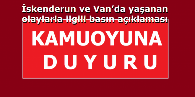 İskenderun ve Van’da yaşanan olaylarla ilgili olarak, hâkimlerin avukatları durduk yere odalarından ve duruşma salonlarından çıkardıklarından bahisle 81 İl barosu ortak basın açıklaması yapmıştır.